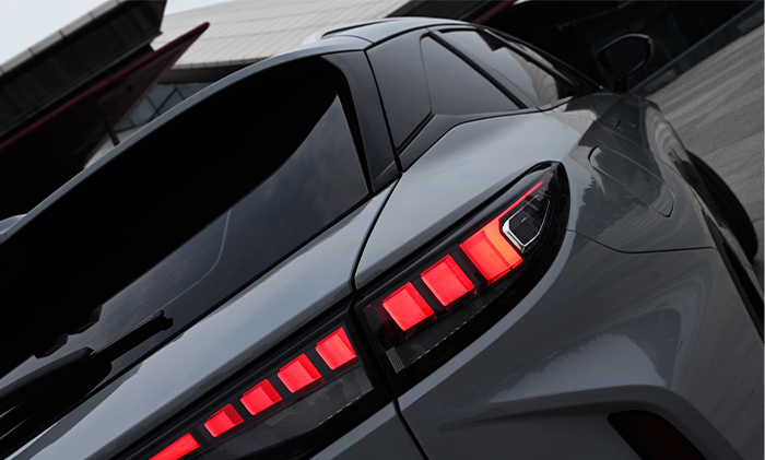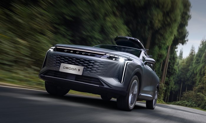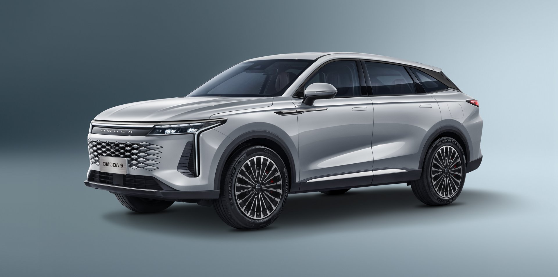 Design OMODA 9 Super Hybrid inspirowany jest minimalizmem i estetyką haute couture. Charakterystyczny świetlisty pas LED płynnie łączy się zreflektorami w kształcie litery „X”, a 20-calowe felgi dopełniają wyglądu premium.